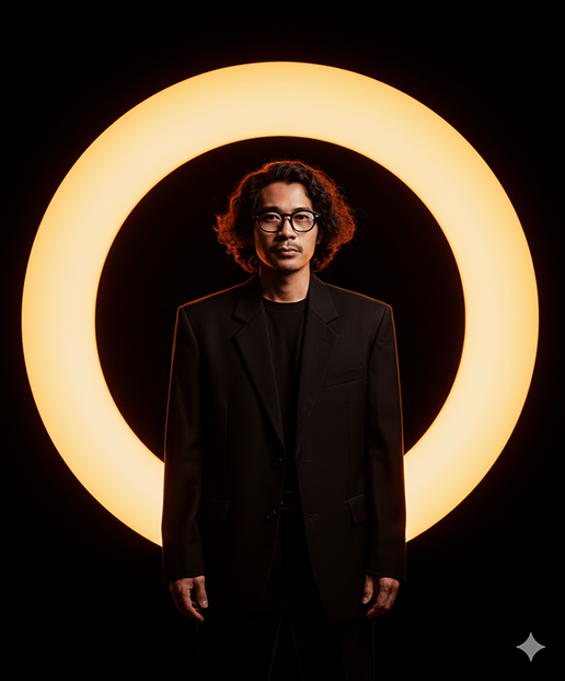 di depan latar belakang cahaya hangat melingkar