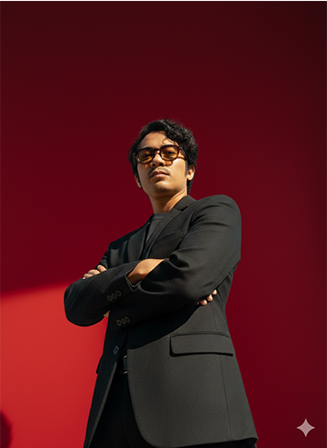 2.5 FlashPlease create a vertical potrait shot in 1080x1920 format using the exact same face features, characterized by stark cinematic lighting and intense contrast. Captured in a slightly low, upward-facing angle that dramatized the subject’s jawline and neck, the composition evokes quite dominance and sculptural elegance. The background is a deep, saturated crimson red, creating a bold visual clash with the model’s luminous skin and dark wardrobe.