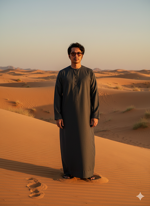 ini memakai kandura abu-abu