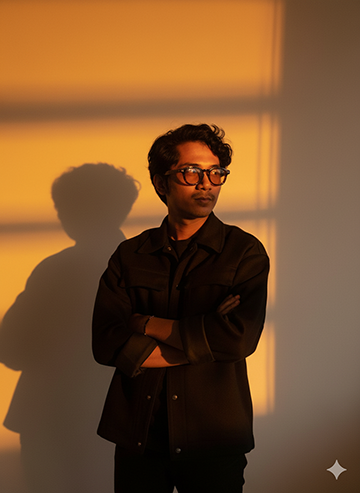 Portrait of a young man in a minimalist indoor setting,