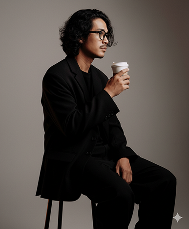 2.5 FlashEdit foto ini menjadi duduk santai di studio