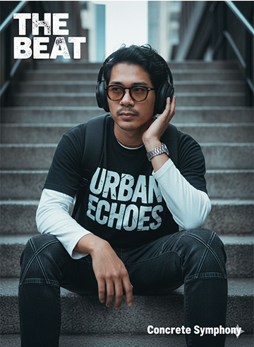 the photo) sitting on outdoor stairs, wearing large over-ear